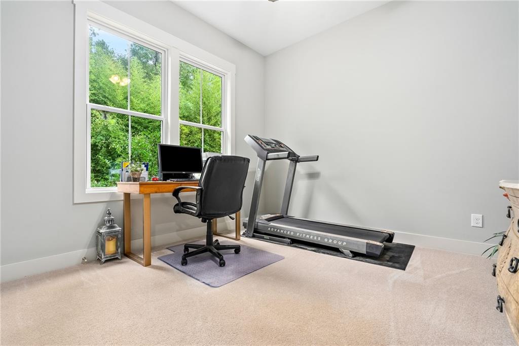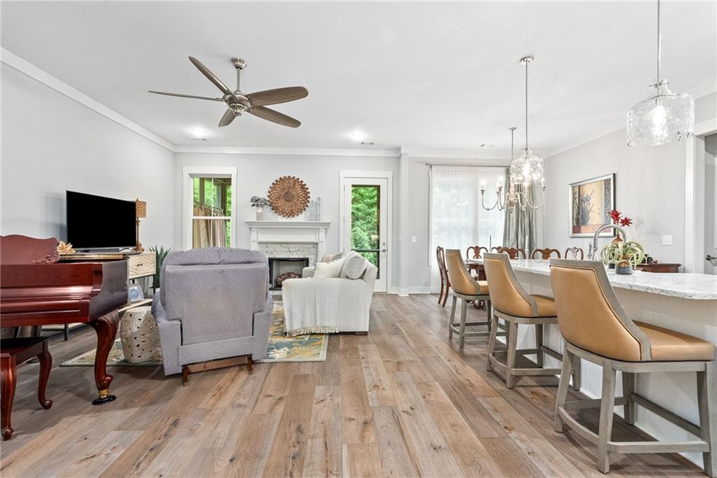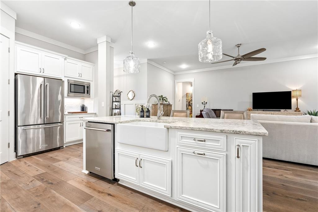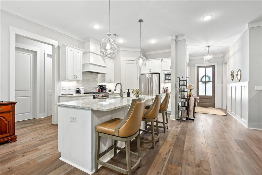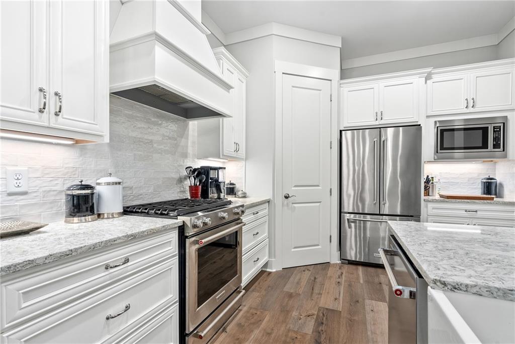 Stunning European-Inspired Home in The Springs of Mill Lakes! This beautiful home showcases timeless European elegance with a charming plaza entry and ample guest parking. The foyer opens to a spacious dining room or study, highlighted by French doors, triple windows, and upgraded Craftsman trim throughout. The great room flows seamlessly into the gourmet kitchen, featuring Cambria Berwyn quartz countertops, a porcelain farmhouse apron sink, tile backsplash, a large center island, and high-end KitchenAid stainless steel appliances, including an ultra-quiet 39-decibel dishwasher with third rack. The primary suite offers a luxurious retreat with dual vanities, Calacatta Laza countertops, a private water closet, a zero-entry tiled shower with frameless glass surround, a linen closet, and an oversized walk-in closet with direct access to the laundry room. Two additional bedrooms feature high-end Triexta carpet and share a full bath with tub and tile surround and Calacatta Laza countertops. Enjoy year-round outdoor living on the covered and uncovered patios, overlooking a half-acre lot with beautiful evergreen views and exquisite low-maintenance landscaping. Additional features include 8-foot doors and windows throughout, tankless water heater, spray foam insulation, an extra-large 24×29 ft garage, gutter guards, and lawn maintenance and treatments included in HOA dues.