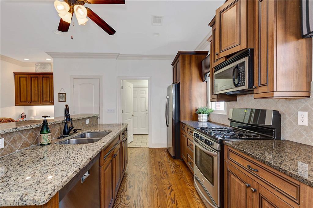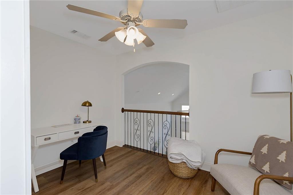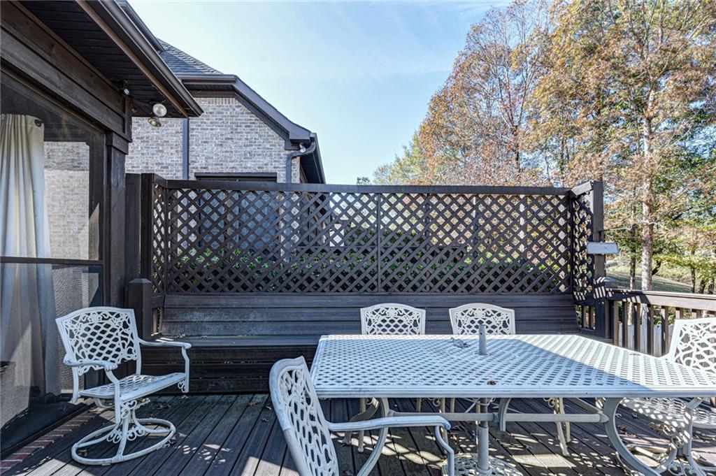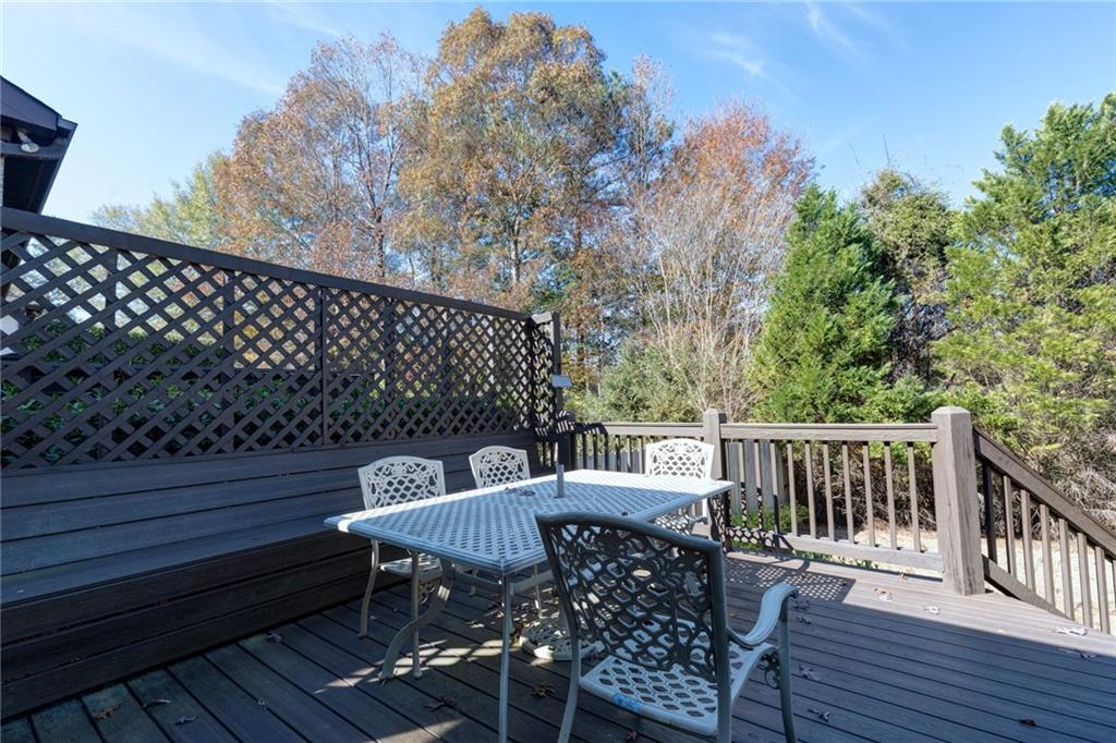 Stunning Four-Bedroom, Three-Bathroom Home with Elegant Features. Welcome to this remarkable four-bedroom, three-bathroom residence, showcasing beautiful hardwood flooring throughout. Most of the living space is conveniently located on one level, with the exception of a single bedroom and bathroom upstairs. As you enter the home through the inviting foyer, you are greeted by two spacious bedrooms accompanied by a shared bathroom. Continuing down the hall, you will find a bright and airy living room featuring soaring ceilings and an abundance of natural light. The open-concept design seamlessly connects the living room to the dining area and kitchen, making it perfect for entertaining. The kitchen features a large island with bar seating, custom cabinets, elegant granite countertops, and modern stainless steel appliances. Adjacent to the living room is the cozy private master suite, complete with dual closets, split vanities, a luxurious walk-in shower, and a spacious soaking tub. At the back of the kitchen, you’ll discover access to a charming screened-in porch, ideal for enjoying the outdoors while staying bug-free. Beyond the porch, a large Trex deck opens up to a private backyard, offering a perfect retreat for relaxation and outdoor gatherings. Don’t miss the opportunity to make this beautiful home yours!